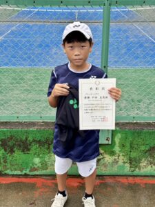 【小山市ジュニアテニス大会】グリーンボールクラスで優勝した戸田圭亮選手。決勝戦は雨の影響で2時間待機となったが、最後まで安定したプレーで勝利することができた。